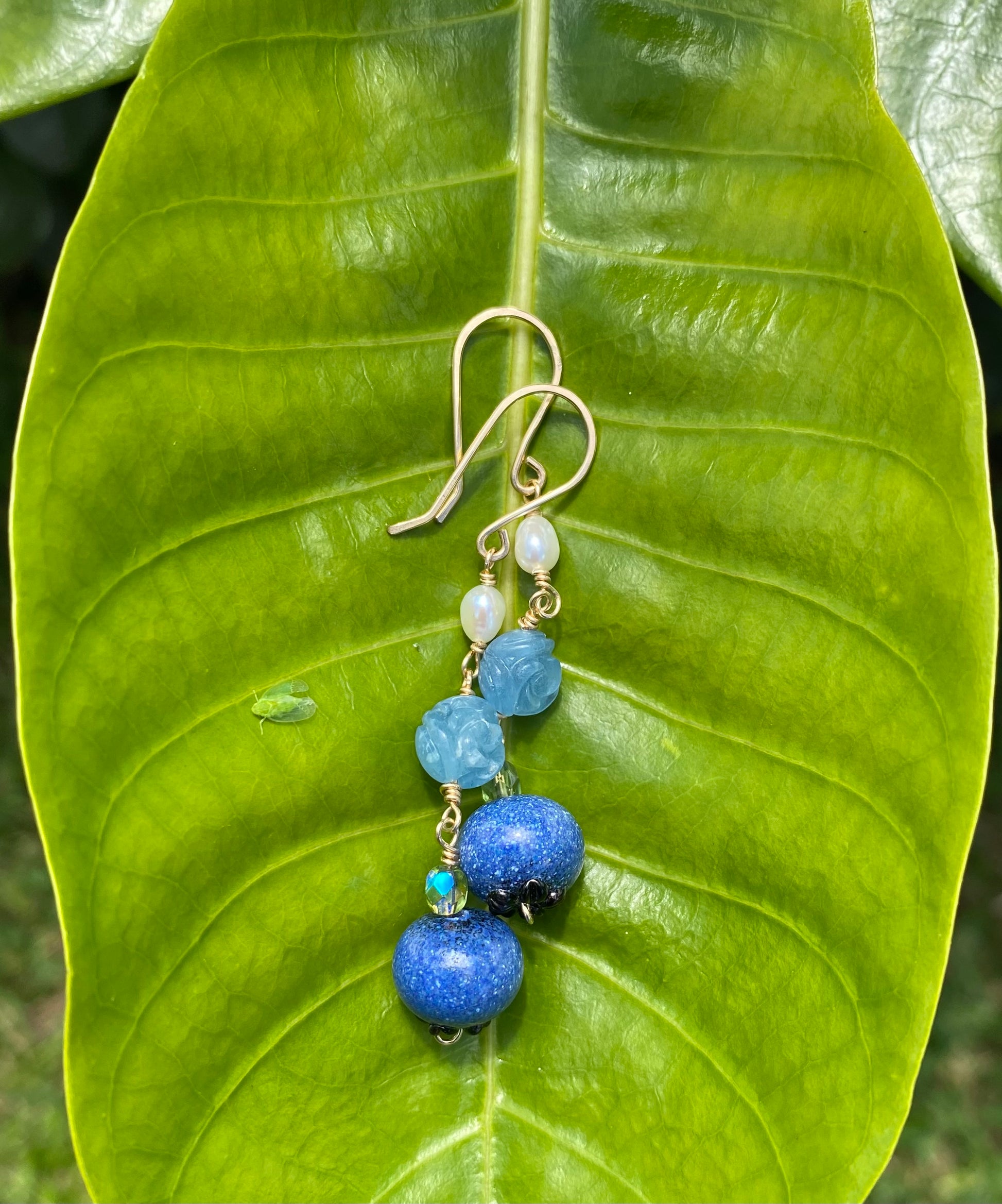 Blueberry Aquamarine Rose Keshi Pearl Earrings